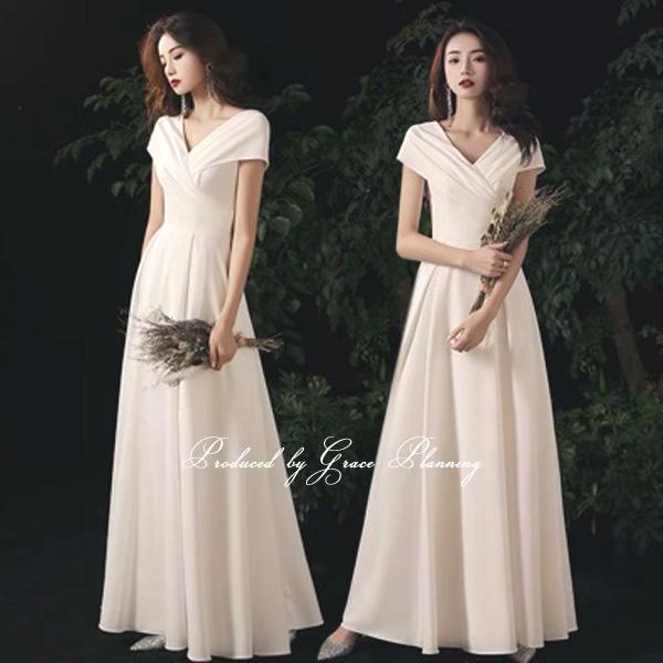 ウエディングドレス ウェディングドレス 結婚式 前撮り ファスナー Aライン スレンダー 半袖 ワンピース 二次会 白 即日発送 gcd0900