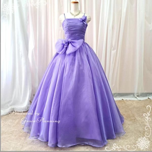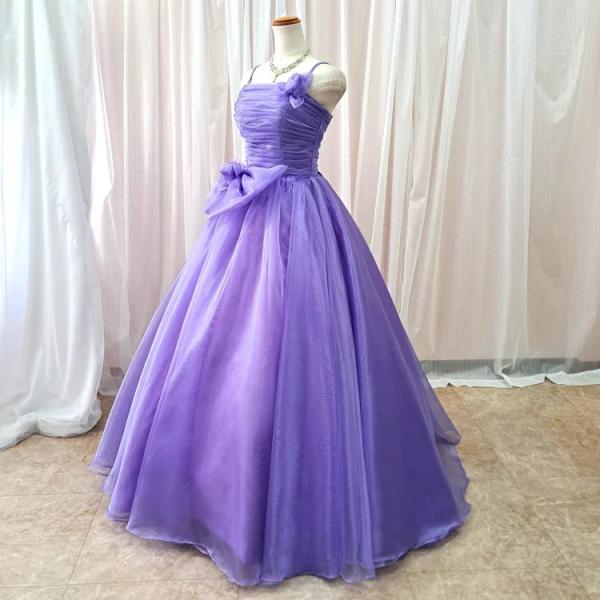 カラードレス 演奏会ドレス 発表会ドレス パープル 紫 ロングドレス 結婚式 花嫁 前撮り 肩紐付き 編み上げ 即日発送 SML cd01264m