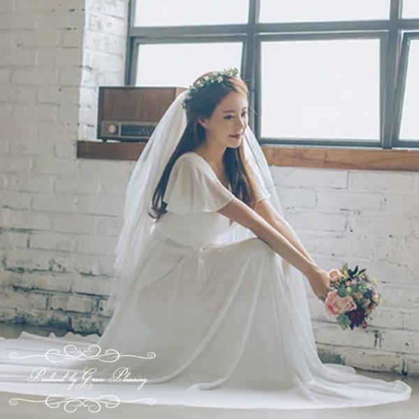 ウェディングドレス ウエディングドレス 結婚式 半袖 袖ありシフォン Vネック スレンダーライン シンプル 花嫁ドレス gcd0605