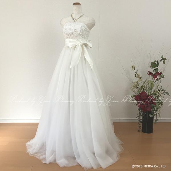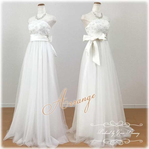 ウェディングドレス ウエディングドレス 結婚式 前撮り 二次会 選べる着丈3タイプ レースとベージュのミディ丈 ミモレ丈 ロングトレーン ファスナー gcd0603