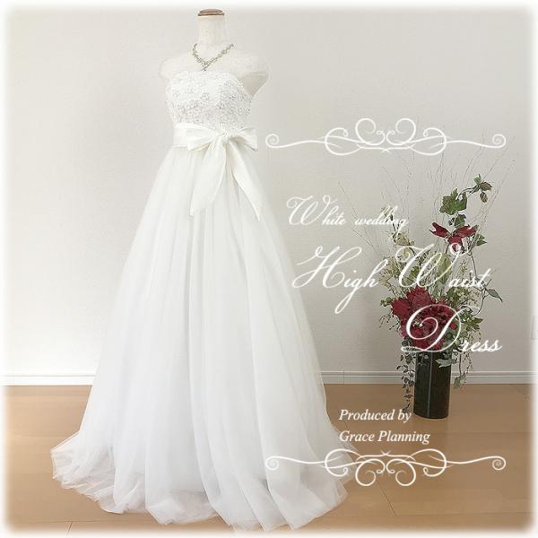 小花とパールビーズが可愛い ウエディングドレス サッシュリボン付き ハイウエスト 結婚式 前撮り 花嫁 即日発送 フォトウェディング 大きいサイズ gcd13025