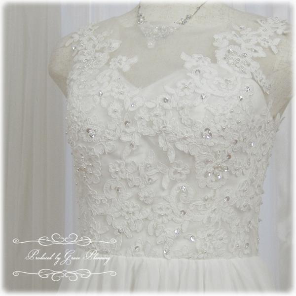 綺麗な刺繍に散りばめられたパールビジューが華やかなスレンダーラインのウエディングドレス 結婚式 前撮りに 即日発送 編み上げサイズ調整 gcd8825