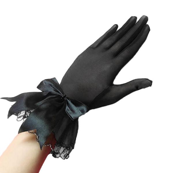 ウェディンググローブ ブラック 黒 手袋 ブライダル レースグローブ リボン 結婚式 前撮り パーティグローブ ハロウィン コスプレ 仮装 即日発送 gl71204