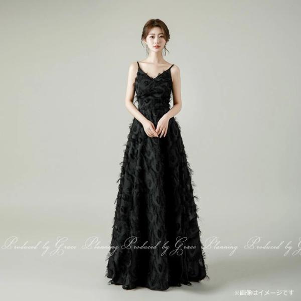 カラードレス 黒 ブラック 演奏会ドレス 発表会 結婚式 二次会 背中ファスナー フェザーモチーフ 肩紐 ウェディングドレス 即日発送 cd80070