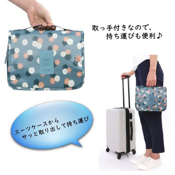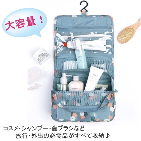 トラベルポーチ メイクポーチ バッグ 花柄 吊り下げ フック付き 小物 収納 旅行 コスメポーチ 化粧ポーチ