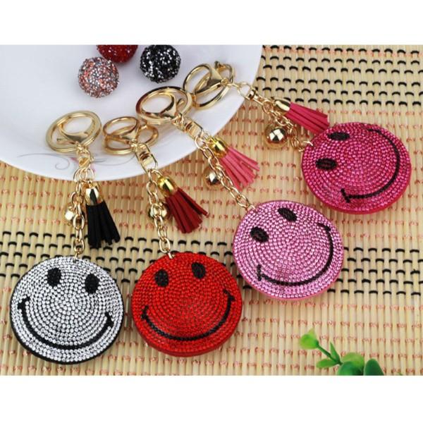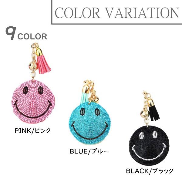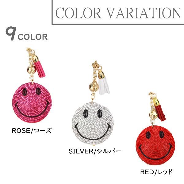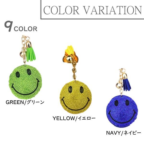 バッグチャーム キーホルダー かわいい チャーム キーリング タッセル付き キラキラ ニコちゃん スマイル レディース キーリング おしゃれ アクセサリー