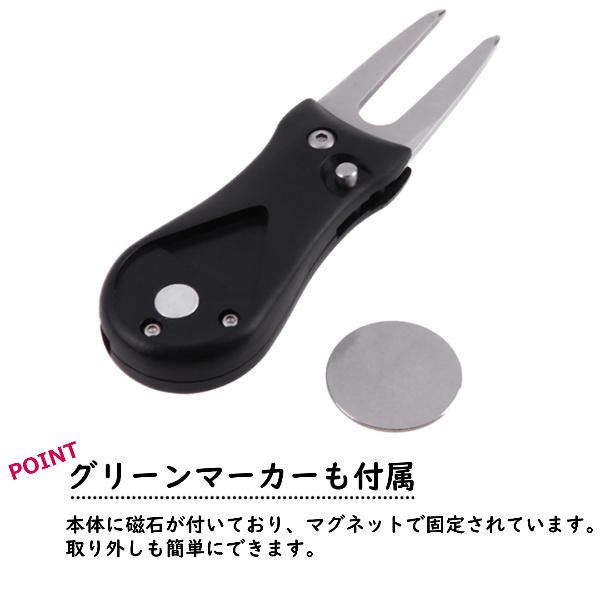 グリーンフォーク マーカー付き ゴルフ マーカー おしゃれ 収納 高級 コンペ 景品 記念品 収納タイプ 2本刃 リペアツール 収納 折り畳み式 使いやすい