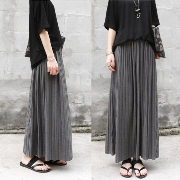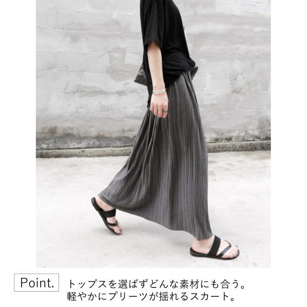 プリーツスカート ロング 夏 春 コーデ iライン ウエストゴム