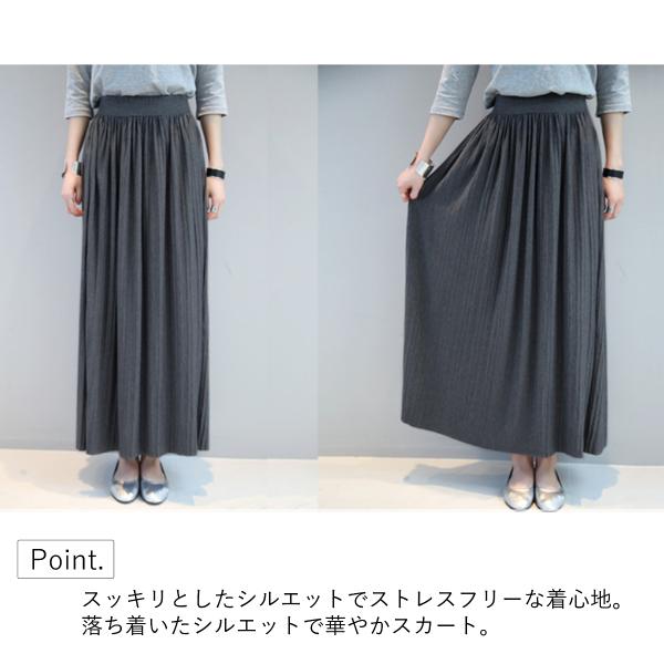 プリーツスカート ロング スカート 夏 春 秋 冬 コーデ iライン ウエストゴム 大人 オフィス かわいい おしゃれ 細見え タイト 長め 10代 20代 30代 40代