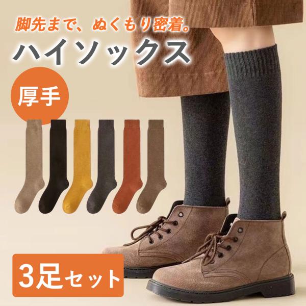 ハイソックス 3足セット 厚手 レディース 靴下 冷え取り 保温 ルームソックス パイル 暖かい 吸湿 発熱 着圧 弾性 学校 秋 冬 防寒 冷え対策