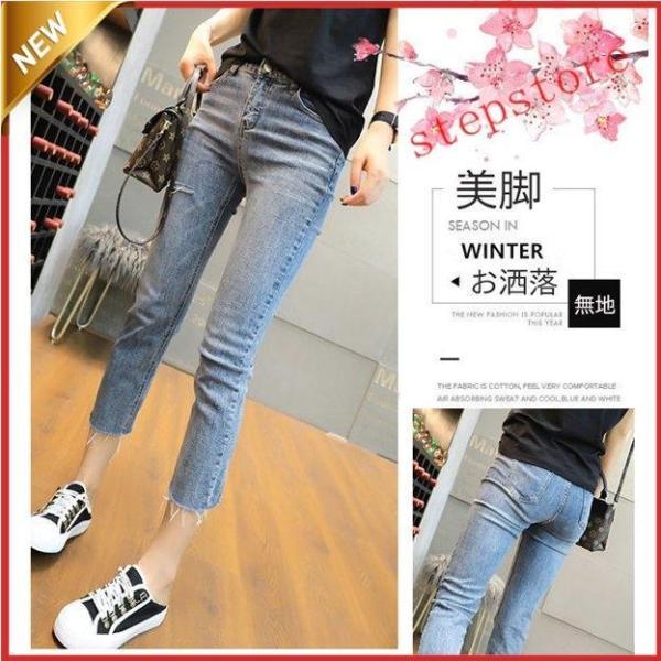 スキニーパンツ デニムパンツ ストレッチ ジーンズ ダメージ レディース ジーパン ボトムス 美脚 デニム 大きいサイズ 7分丈 ズボン