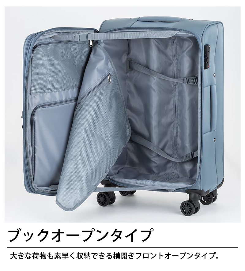 スーツケース 送料無料 正規品 トラベリスト TRAVELIST アクセル Mサイズ トップオープン ストッパー 76-25200 51-61L フロントオープン 拡張 ドリンクホルダー