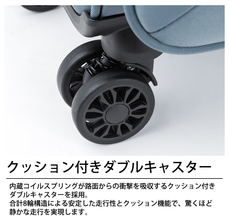 ・クッション付きダブルキャスター(8輪)で静音性と安定走行を両立