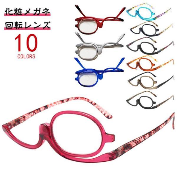 メイクアップ専用 アイメイク専用 レディース 化粧用 老眼鏡 おしゃれ 老眼鏡 度入り メイクアップ 女性 メイク用老眼鏡 シングルレンズ 回転メガネ
