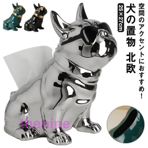 ティッシュケース おしゃれ インテリア ペーパーボックス フレンチブルドッグ ティッシュ入れ 陶器製 セラミック ティッシュカバー 置物 犬の置物 か