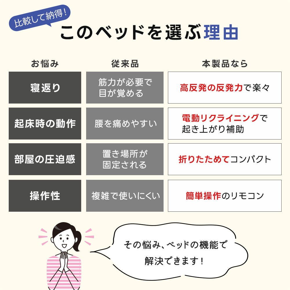 【検索キーワード】電動折りたたみベッド 折りたたみベッド 電動ベッド 介護ベッド 電動 折りたたみベッド コンパクト コンパクトベッド 介護用ベッド 簡単ベッド 高反発マットレス マットレス付きベッド 新生活家具 敬老