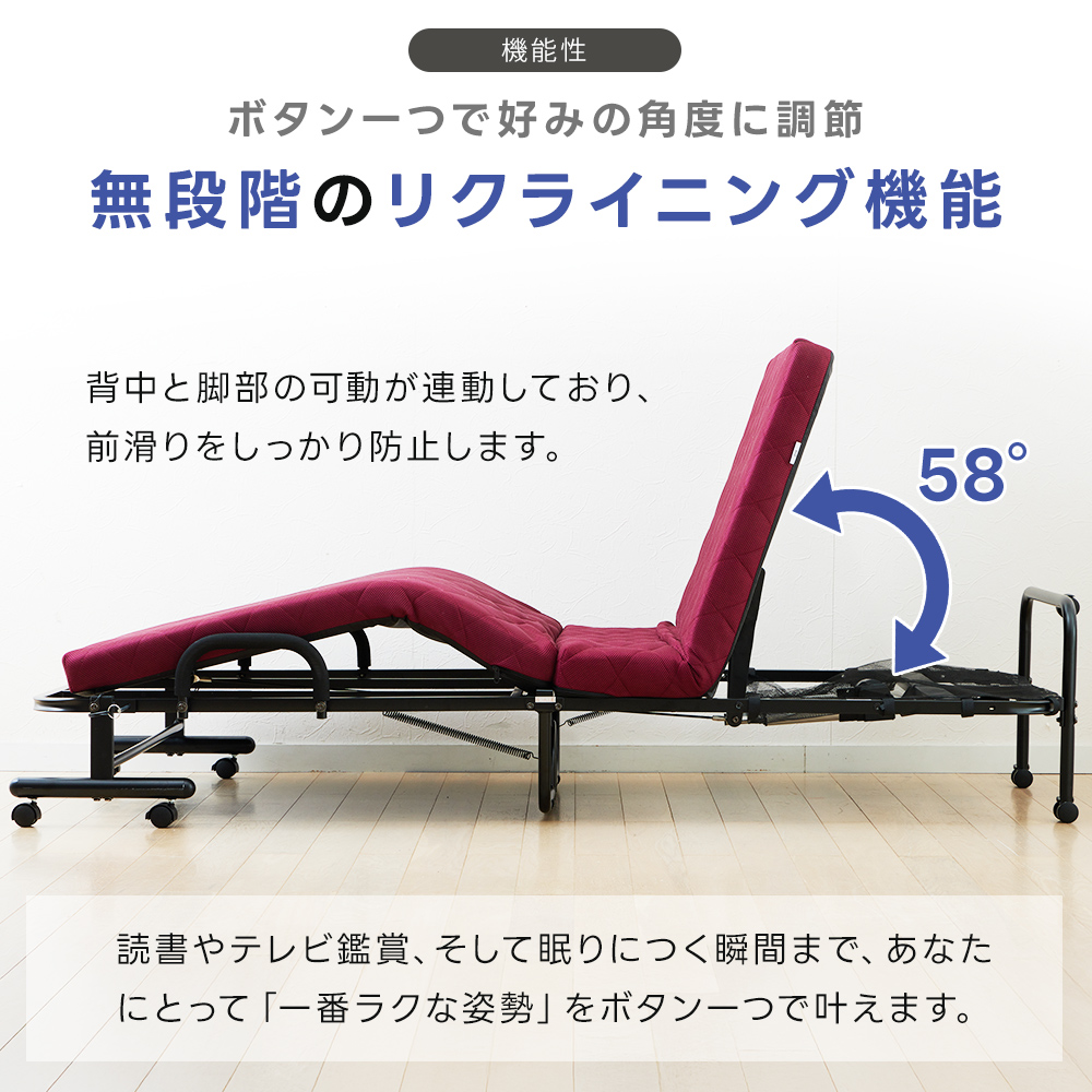 折りたたみベッド シングル 14段階リクライニング 一人暮らし 単身赴任 コンパクト 安い Sサイズ シンプル 折り畳み おしゃれ 移動 布団干し 倉出し