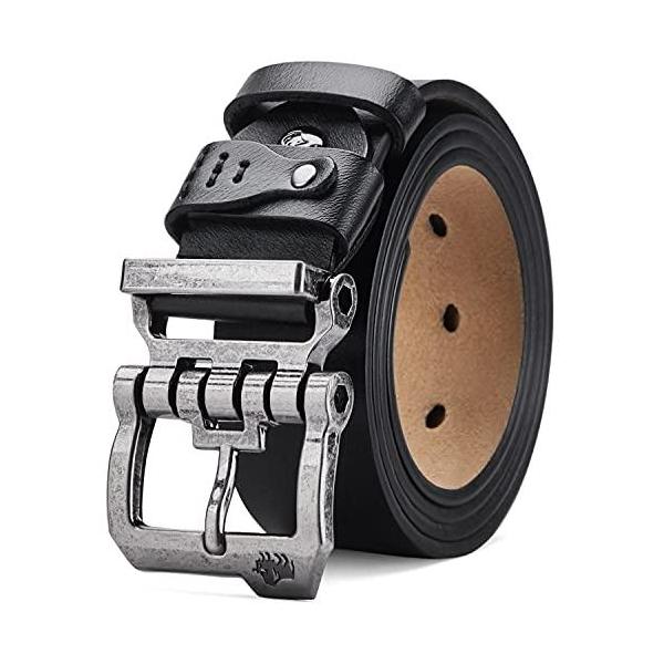 BISON DENIM メンズ ベルト レザードレス 本革 クラシック 高耐久 バックルベルト カジュアル ジーンズ用, シルバーバックル+ブラックベ
