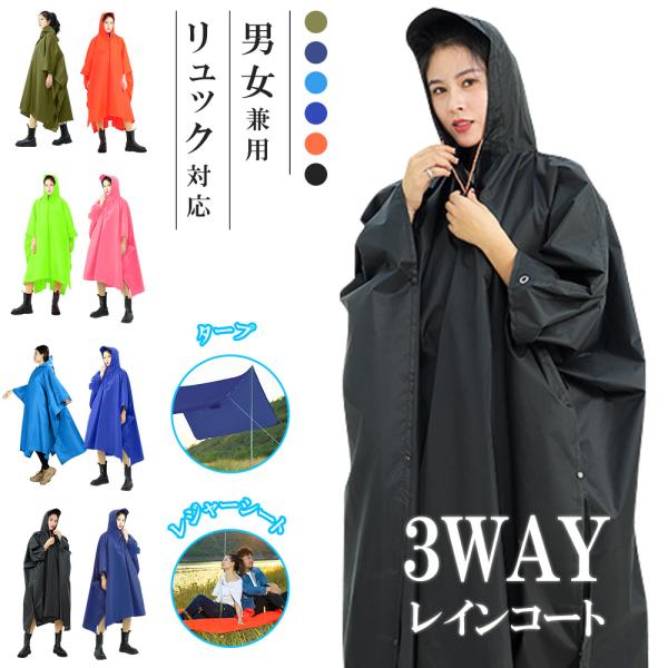 レインコート 自転車用 収納袋付き レインポンチョ ロング丈 レインウェア リュック対応 タープ 通勤 通学 雨合羽 カッパ 防水 男女兼用