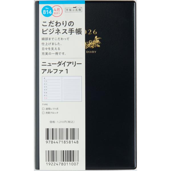 [Bindex] 2026年1月始まり 月間ダイアリー 時間メモリ入り 横ケイタイプ 041 月間1