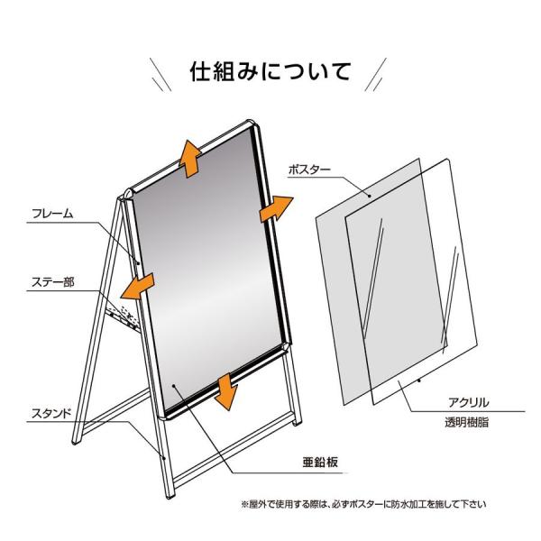 A型スタンド看板 2点セット ブラック(A1サイズスタンド看板、乗せ台) グリップ式 A型看板 片面 シルバー W640mm×H1225mm 前面開閉式 2set-kjc-a1-s