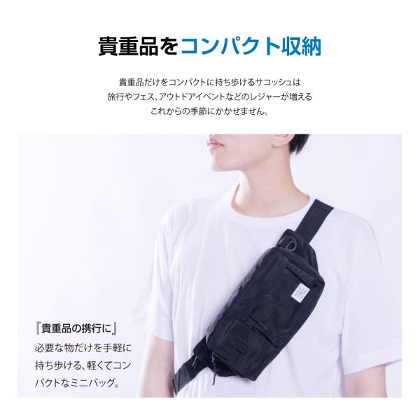 【貴重品をコンパクト収納】貴重品だけをコンパクトに持ち歩けるサコッシュは旅行やフェス、アウトドアイベントなどのレジャーが増える、これからの季節にかかせません。