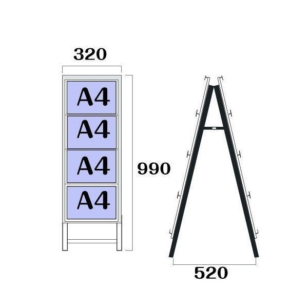スタンド看板 A型看板 カードケース差し替え式 A型看板 看板・店舗用看板: カードケーススタンド看板 A4 1列 4段 両面 (立て看板 / スタンド看板 / A型看板(A看板) / 屋外看板 / カードケース差し替え式) カードケース差し替え式 A型看板