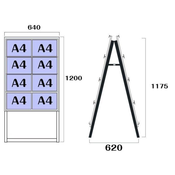 看板 店舗用看板 アルミスタンド カードケーススタンド看板A4横8両面ハイ【KDKS-A4Y16RH】