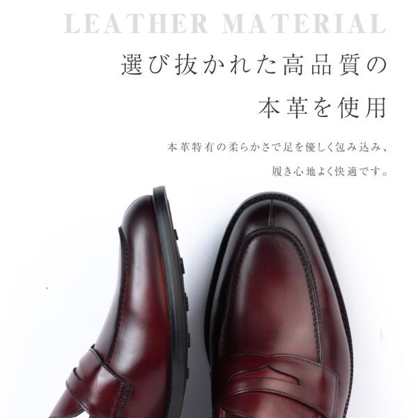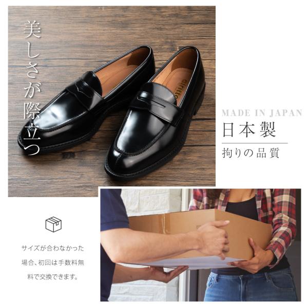 【本革仕上げ】こちらの製品につきまして、馴染みが良く本格的な風合いの日本製 天然皮革を使用し、日本男性の足型に基づいて設計された靴型なので、長い時間に立つ或いは歩いても足が痛くなりません。