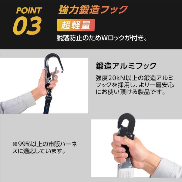 産業安全技術協会 認証取得 墜落制止用器具 ランヤード 伸縮式ランヤード 軽量モデル 作業性 安全性 高所安全作業 電気工事 登山 dk-fhb-ly