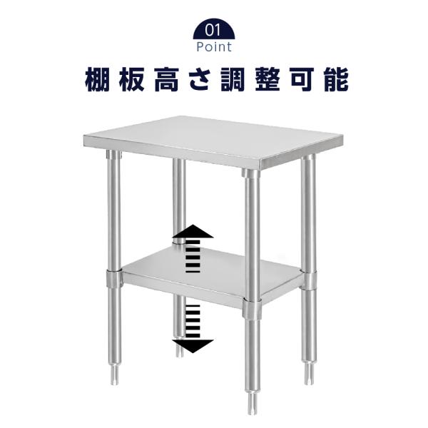 ※材質:天板:ステンレスSUS430 脚:ステンレスSUS201、梁:スチール アジャスト脚:ステンレスSUS201/PVC