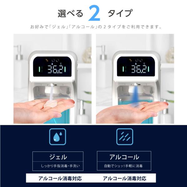 アルコールディスペンサー ディスペンサー 非接触 検温 大容量 センサー式 手指消毒 アルコール ジェル 2種類 ipx4防水 mkks-1000