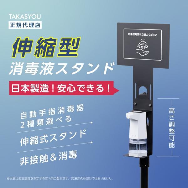 伸縮アルミスタンド付き + 自動手指消毒器2種類選べる