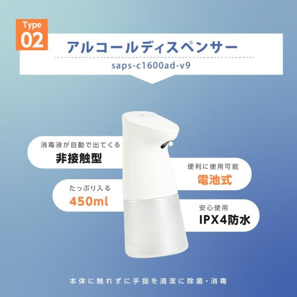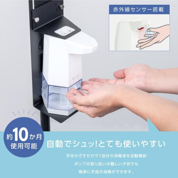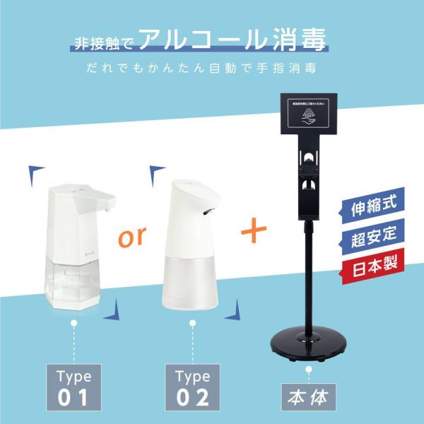 非接触 消毒液スタンド [伸縮アルミスタンド付き + 自動手指消毒器2種類選べる] オートセンサー アルコール ディスペンサー saps-c1600ad