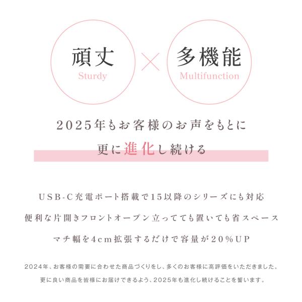 【フロントオープン】PC用ポケットにはパソコン・タブレットパスポート・本・ノートなどが収納できます。空港や電車内で、移動中でも荷物を出し入れできるフロントオープンタイプ。