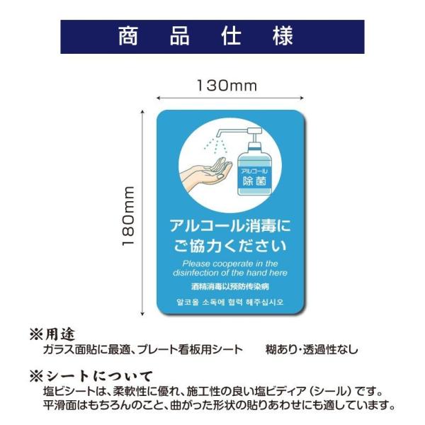 【10枚セット】 注意喚起 4ヶ国語 アルコール消毒標識掲示 ステッカー 背面グレーのり付き 屋外対応 店舗標識や室内掲示にも!シールタイプ (stk-c025-10set)
