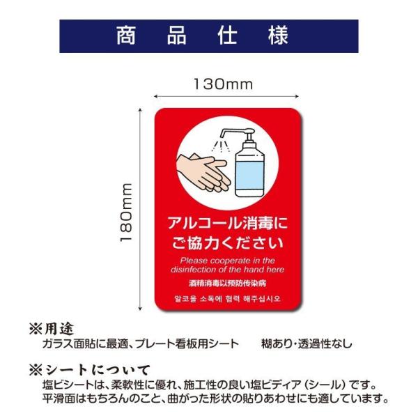 【6枚セット】 注意喚起 4ヶ国語 アルコール消毒標識掲示 ステッカー 背面グレーのり付き 屋外対応 店舗標識や室内掲示にも!シールタイプ (stk-c026-6set)