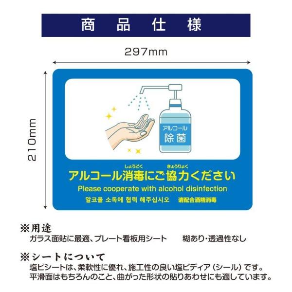 【2枚セット】a4サイズ 注意喚起 4ヶ国語 アルコール消毒標識掲示 ステッカー 背面グレーのり付き 屋外対応 店舗標識や室内掲示にも(stk-c035-2set)