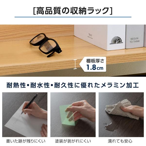 【木目調デザイン、人気の2カラー】 デスク周りを明るく見せる「ナチュナルカラー」と高級感があり引き締まって見せる「ダークブラウン」をご用意しました。 棚は背面があるので視覚的にもGOOD!お部屋のイメージに合わせお選びください。
