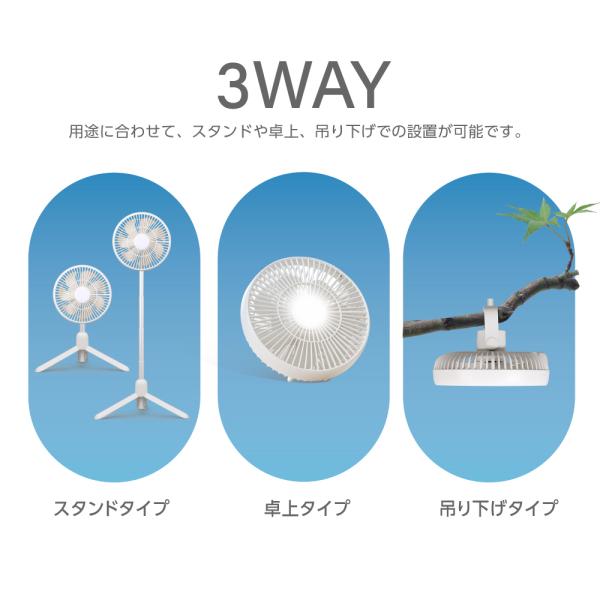 1台3役 卓上 吊り下げ スタンド 扇風機 LEDライト Type-c 充電