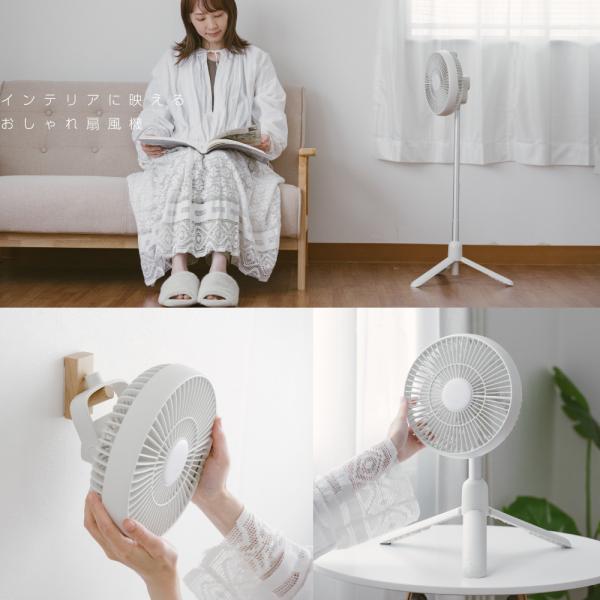 【1台3役幅広く活躍】用途に合わせて、卓上や吊り下げ、スタンドでの設置可能です。そよ風のような心地良い風からパワフルな強風まで使用シーンに合わせて風量が切り替えられます。