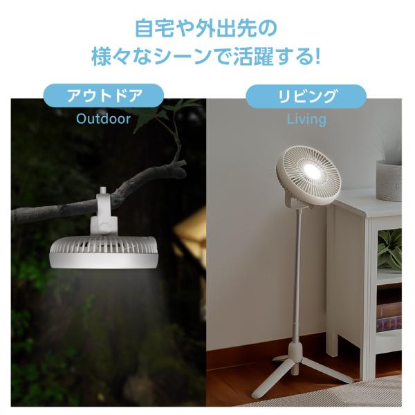2022年新型 ledライト搭載 スタンド式 サーキュレーター 扇風機 高さ調節可能 8000mah バッテリー 最大27時間 7枚羽根 3段階風量調節 xr-js01