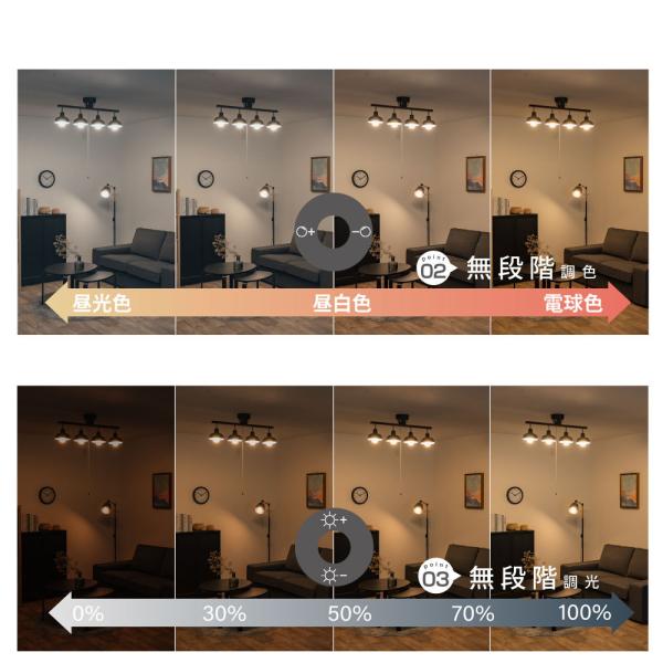 調色は、昼光色6500k〜電球色3000kまでの間で無段階で調節可能。勉強や仕事に集中したい時・落ち着いて読書がしたい時・寝る前のリラックスタイムなど、シーンに合わせたお好みの光の色が選べます。