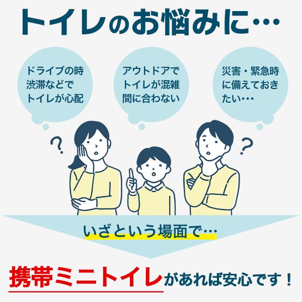 ■非常用トイレは登山やキャンプや車中泊などのアウトドア、渋滞中の車内など幅広いケースでお使いいただけます。