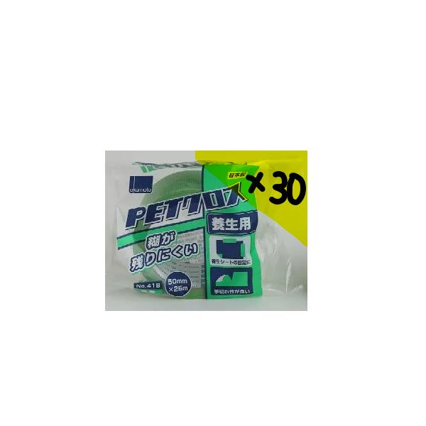 養生テープ 50mm×25m 緑 30巻 No.418 PETクロス 養生 テープ グリーン 安い 大特価 限定 オカモト 若草 業務用 防災 台風 手で切れる 仮止め 塗装 DIY 引越し