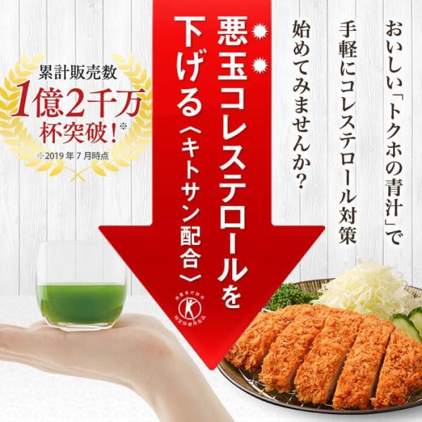 コレステロールを抑える「キトサン」を配合。様々な栄養素が詰まった大麦若葉を主原料にした特定保健用食品の青汁です。