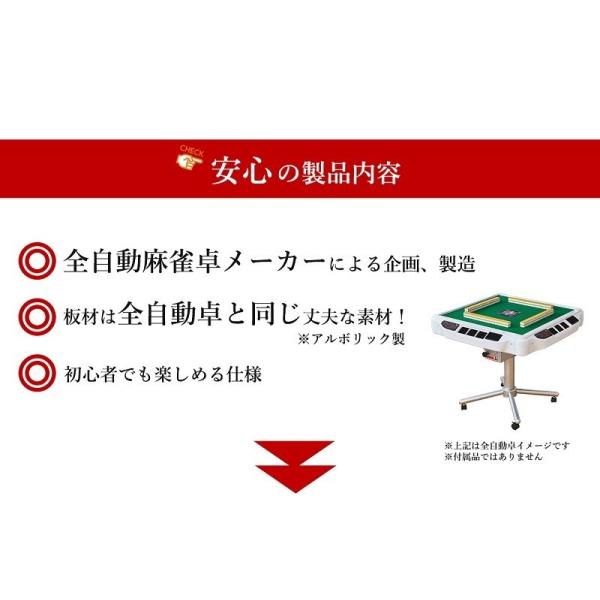 板材は全自動卓と同じ丈夫なアルボリック製。安心して麻雀をお楽しみいただけます。