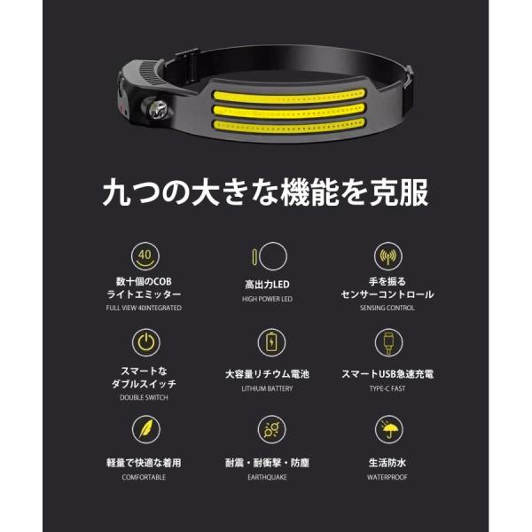 ヘッドライト 充電式 LED ヘッドライト USB type-c 充電式 230°