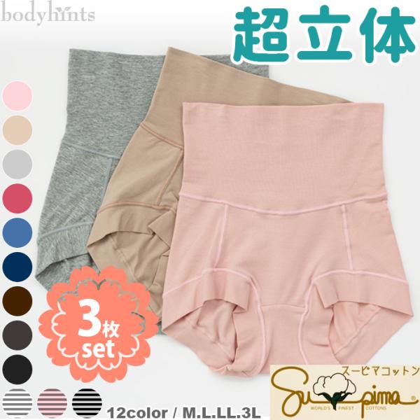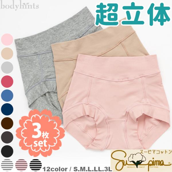 超立体ショーツ 3枚セット 福袋 スーピマコットン スタンダード ハイウエスト ショート 下着 丈、色味選択可 レディース ショーツ セット