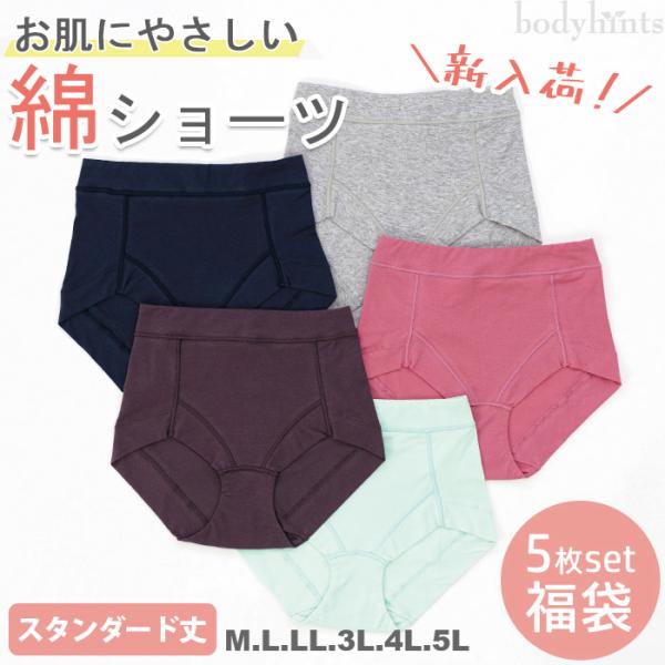 コットンショーツ 5枚セット 綿 福袋 スタンダード 深履き 深め すっぽり デイリー 女性用下着 肌着 レディース 人気 お得 無地 訳あり